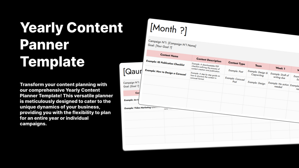 Transform your content planning with our comprehensive Yearly Content Planner Template! This versatile planner is meticulously designed to cater to the unique dynamics of your business, providing you with the flexibility to plan for an entire year or individual campaigns.